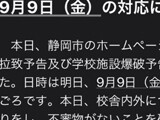 静岡市に爆破・拉致予告 「9月9日に小中学生を拉致する」「3時34分に小中学校全校を爆破する」