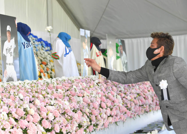 新庄監督、献花台へ花を投げる「野村さんに受けてもらいたかった」