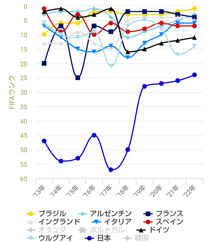 【データ】サッカー日本代表の過去10年間のFIFAランキング推移www