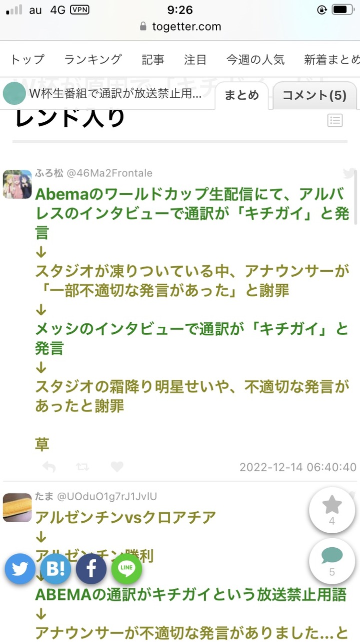 メッシを通訳した人「え?『キチ○イ』って放送禁止用語だったん…?ずっと日本にいないから知らんわ」
