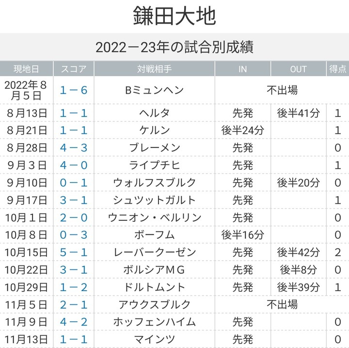 【日本代表】鎌田大地 → 13試合参加して7得点! 三笘薫 → 9試合参加して1得点
