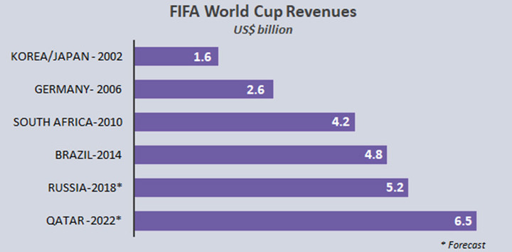 【朗報】FIFA、カタールW杯の視聴者数は50億人と推定。収益は過去最大の1兆円に達する見込み