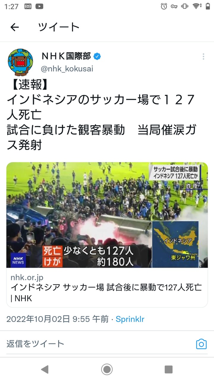 【悲報】サッカーの試合で暴動、ピッチ内で127人が死亡…