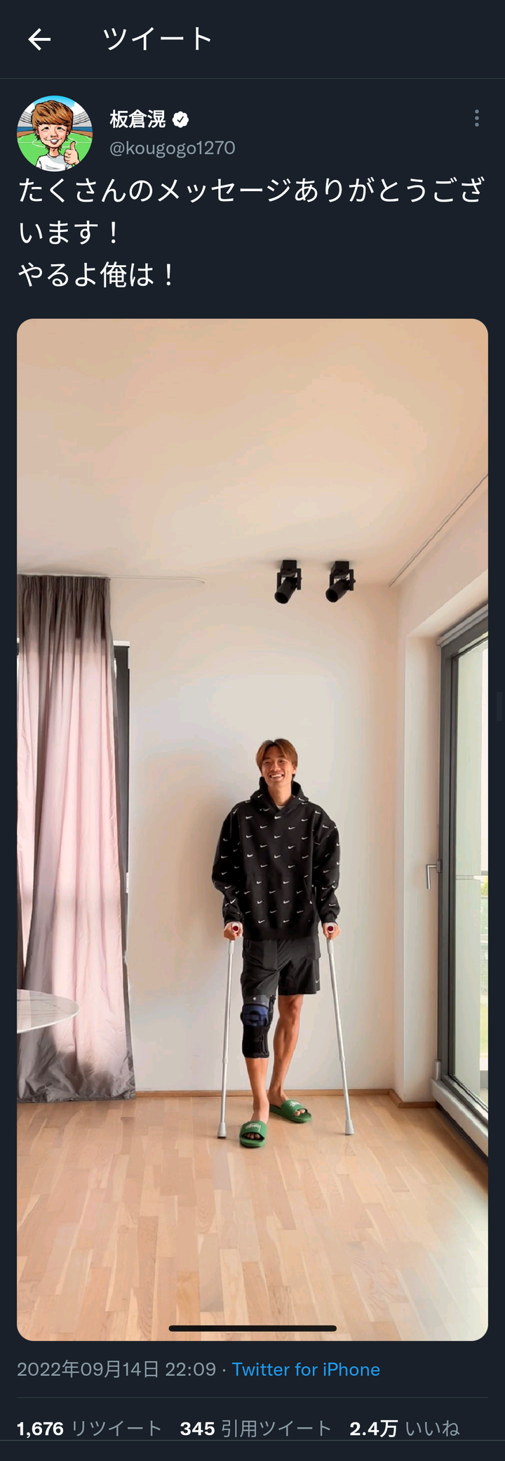 【画像】負傷したサッカー日本代表・板倉さん、これ間に合うか?