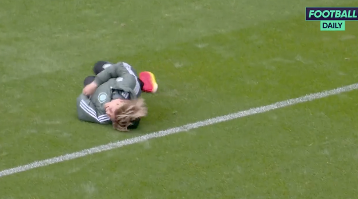 【動画】セルティック古橋さん、負傷交代後にふざけてずっこけるwww