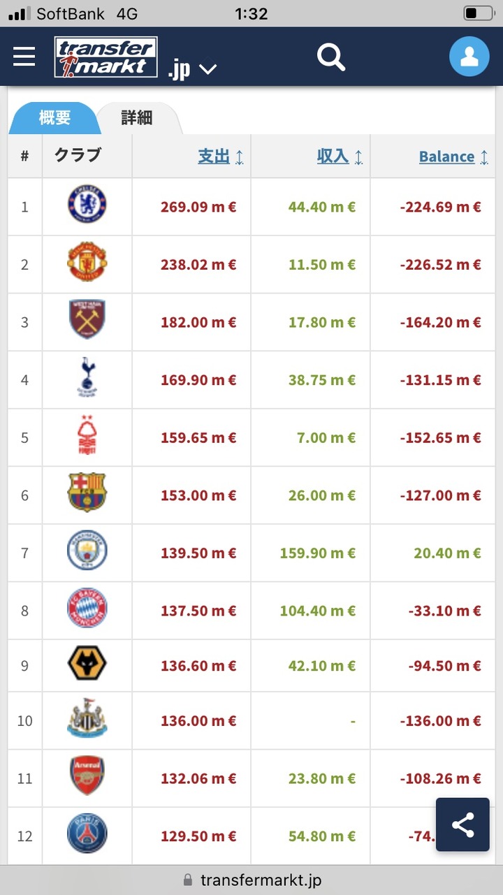 ここまでの欧州サッカー夏の移籍支出額ランキングがこちらwww【プレミア強】