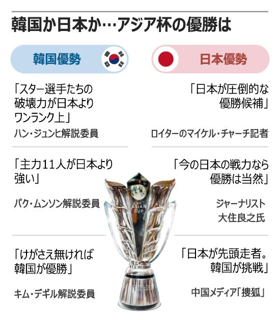 【アジア杯】選手の質は韓国の方が高いのになんでどこも日本を優勝候補にあげてるの? ← www