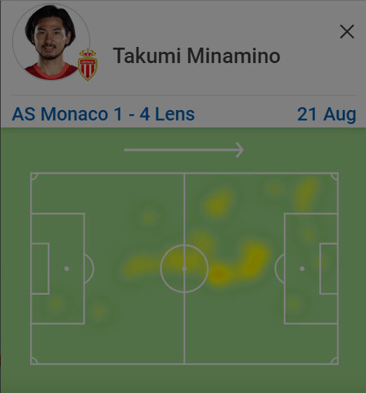 【悲報】モナコ南野拓実さん、左SHでスタメン出場した結果www【ヒートマップ】