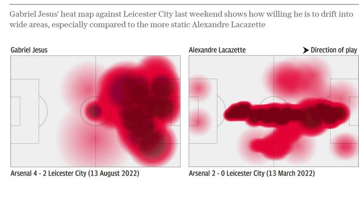 【緊急】アーセナルのジェズス、前節のヒートマップがヤバ過ぎると話題にwww