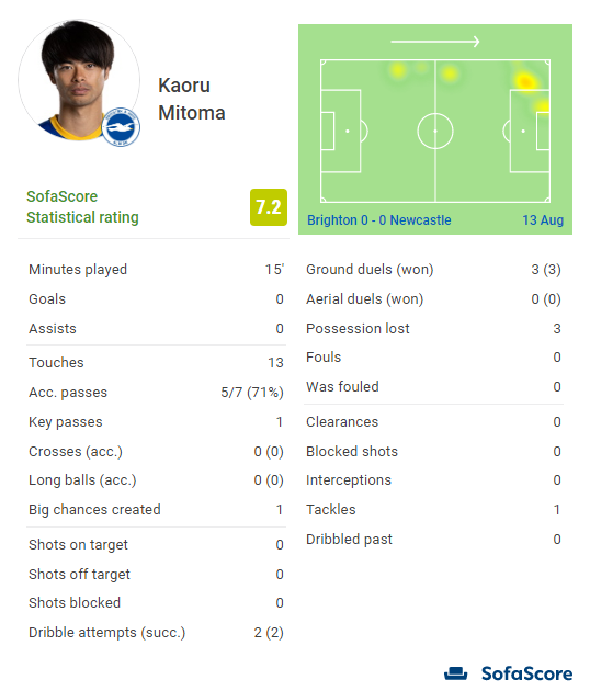 【朗報】プレミアデビューを果たしたブライトン三笘薫のスタッツがスゴいwww