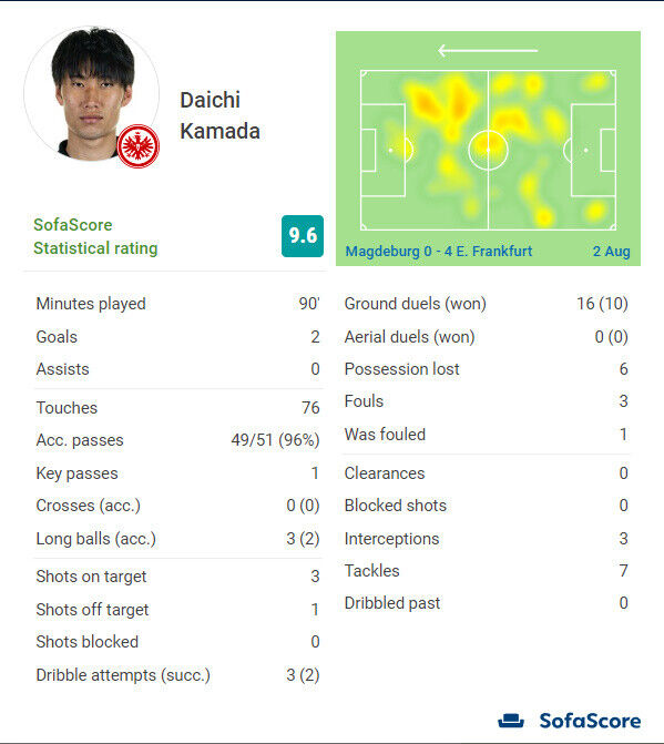【朗報】本日2ゴールの鎌田大地、スタッツも圧巻だった!
