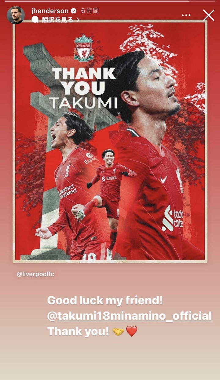 リバプール主将ヘンダーソン「南野ありがとう!グッドラック マイフレンド!」」南野拓実 319タキ