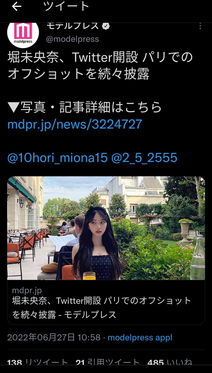 元乃木坂の堀未央奈さん、1日でTwitterを凍結される