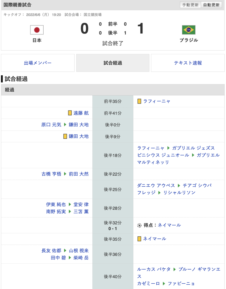 【日本代表 vs ブラジル】試合終了!ネイマールがPKを決めて0-1!日本惜敗!