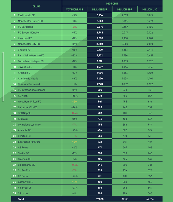 【朗報】マンチェスター・ユナイテッドさん、プレミアリーグで1番価値のあるクラブということが判明!!!!