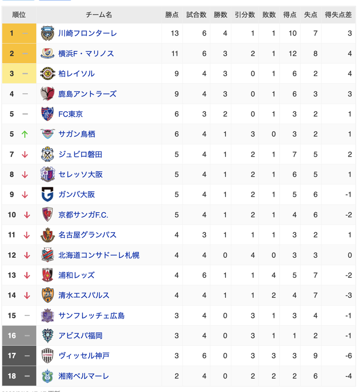 Jリーグさん、今年の順位が波乱過ぎるwww