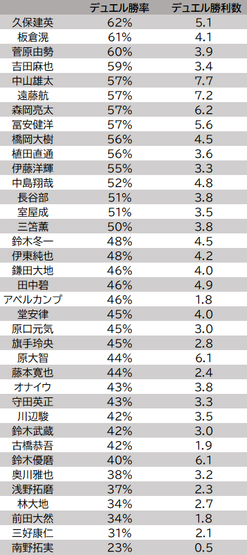 今季欧州リーグでの日本人デュエル勝率!久保建英さん、意外と凄いwww