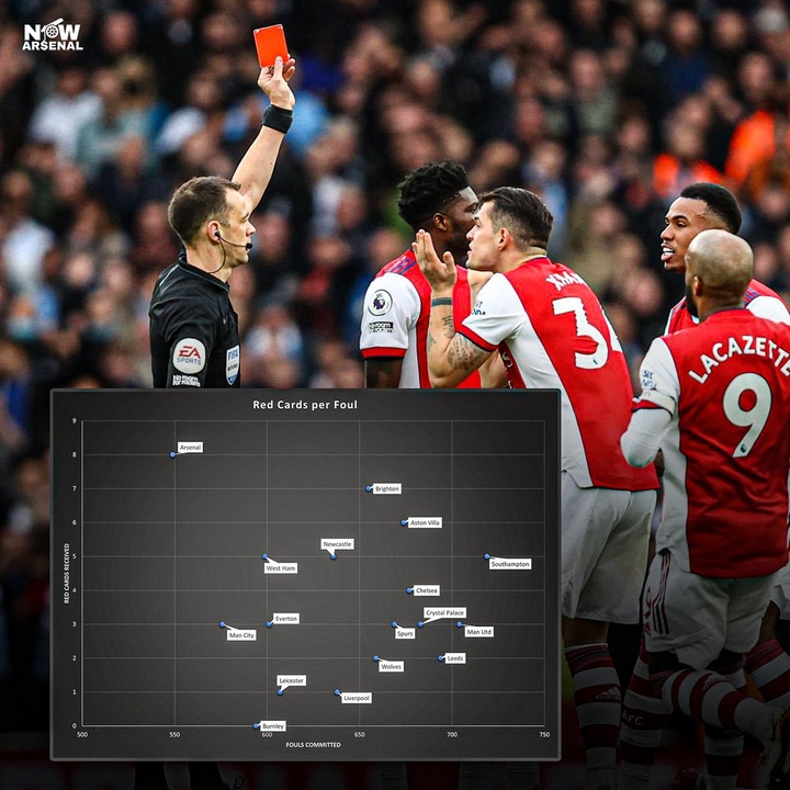 【データ】アーセナルのレッドカード率が半端ない件についてwww