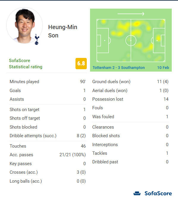 【スタッツ】韓国のエース・ソンフンミンさん、実はデュエル弱い可能性www