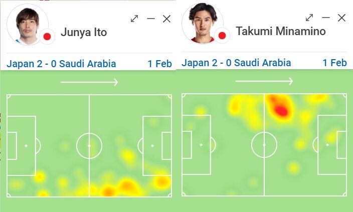日本代表・南野拓実のヒートマップ… 中国戦とサウジ戦の変化っぷりwww