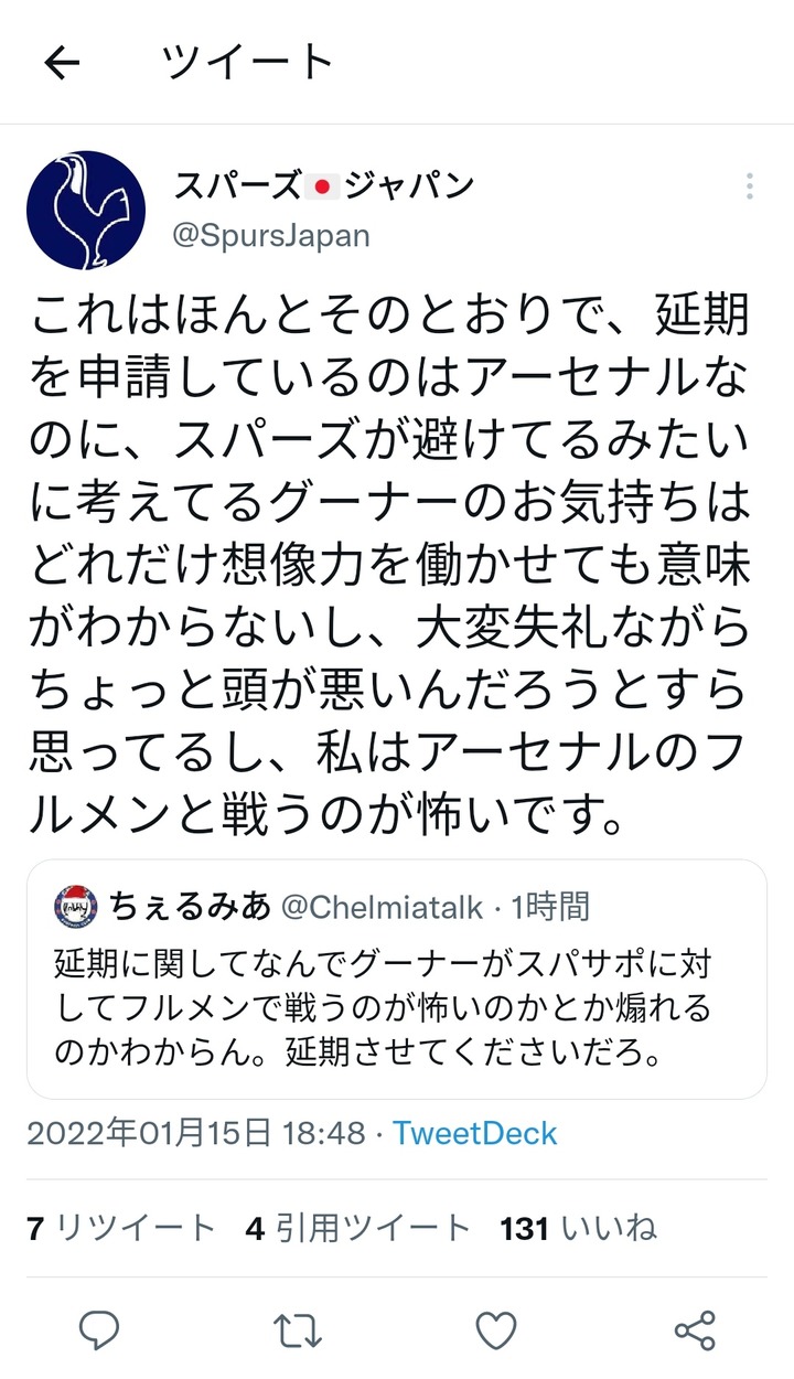 スパーズジャパン「アーセナルファンは頭が悪いと思ってますw」
