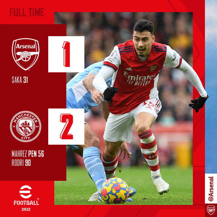 アーセナルさん、マンC相手に先制するも逆転され 逝く…www