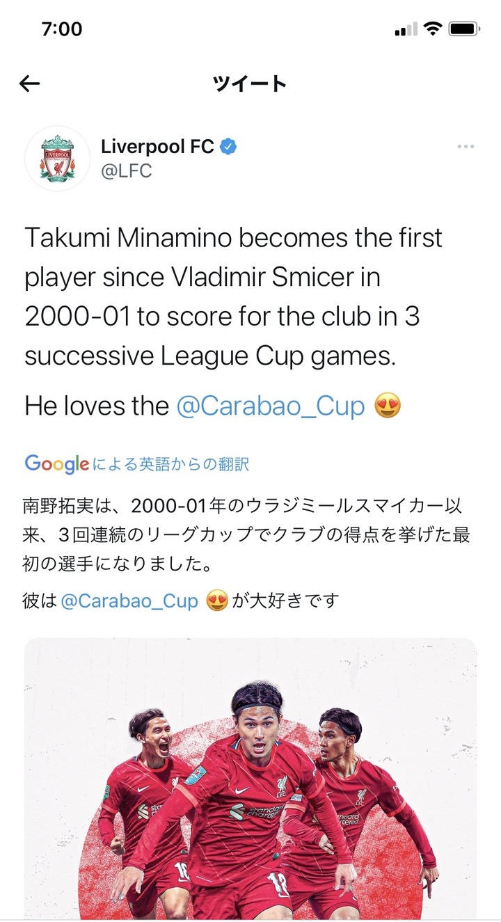 【カラバ王】リバプール公式「南野はカラバオカップが大好きです!」www