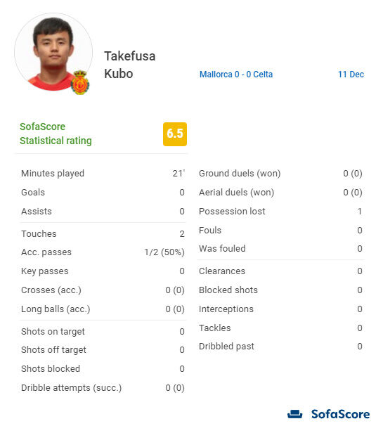 セルタ戦の久保建英とイ・ガンインのスタッツを比較した結果www