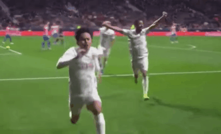【GIF】久保建英さん、ゴール後1番最初に抱きついきにきたイガンインを振り落とすwww