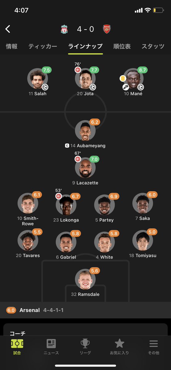 【悲報】アーセナル冨安のリバプール戦の採点がヤバい… 【4失点】