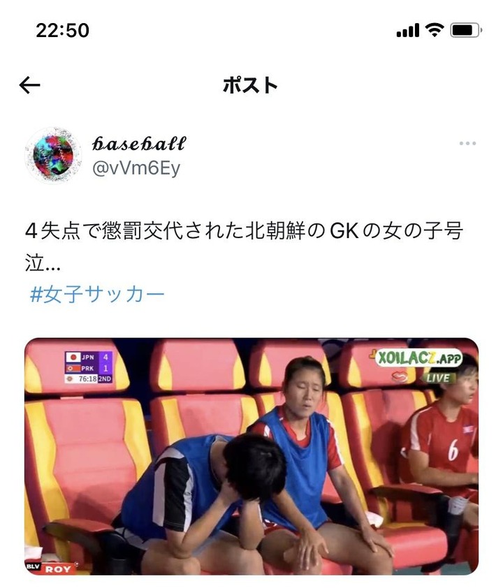 【悲報】女子サッカー決勝で4失点して懲罰交代された北朝鮮のキーパーwww