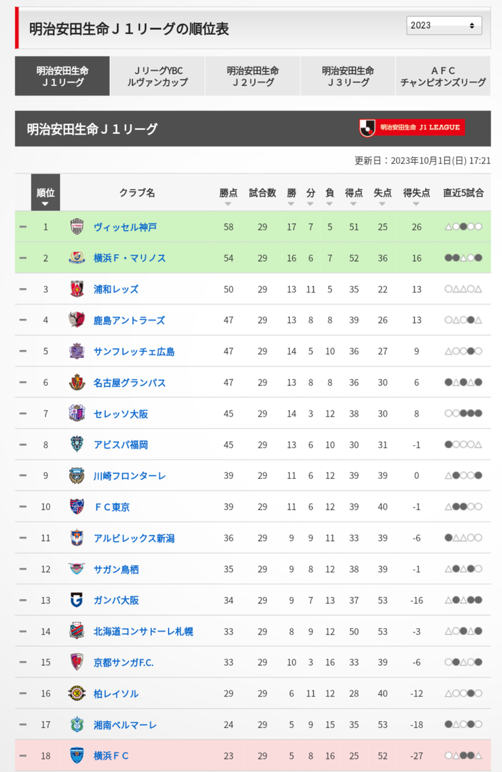【衝撃】Jリーグ最新順位表がカオスすぎるwww
