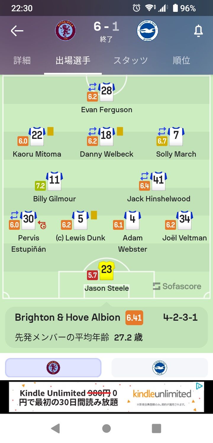 【悲報】三笘スタメンのブライトンさん、逝く… 【前半だけで0-3】
