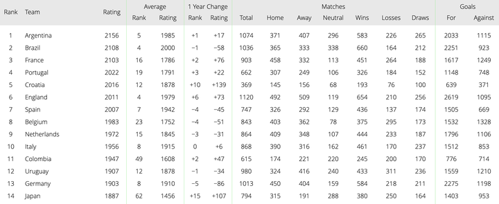 【朗報】サッカー日本代表、最も正確な強さを表す指標で世界14位にランクイン!