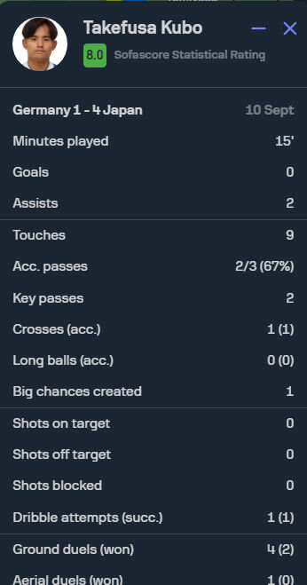 【驚愕】ドイツ戦の久保建英さん、パス3本で2アシストwww