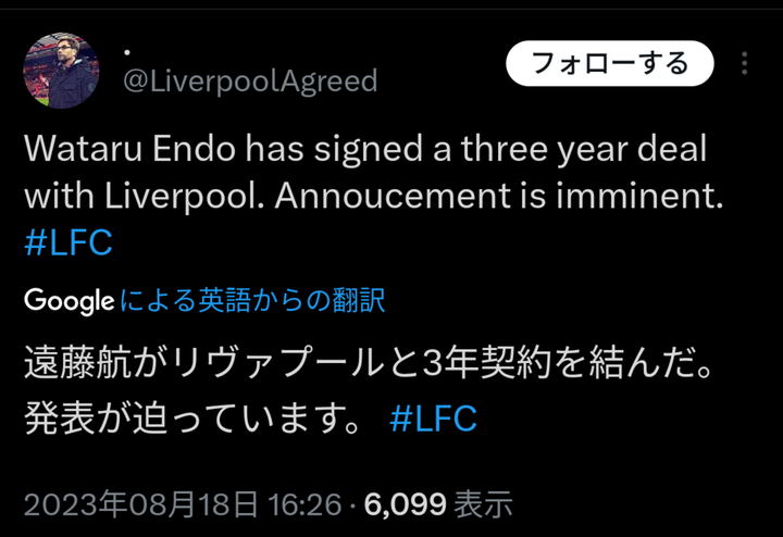 【超速報!】遠藤航、リバプール移籍の正式発表!キターーーー!!!! 背番号は3番!