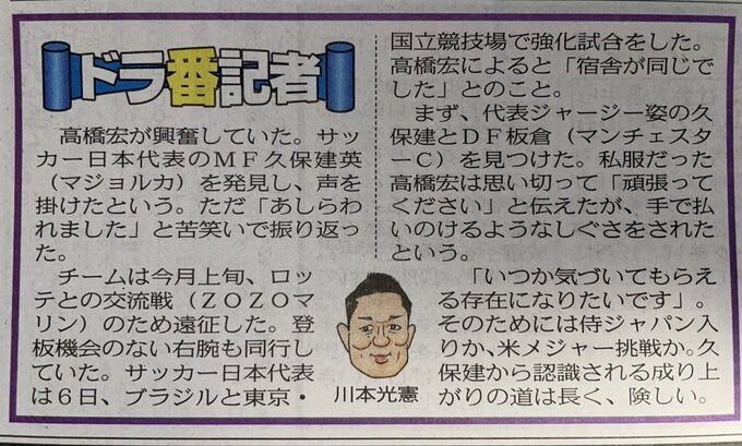 中日・高橋宏斗「あっ!久保建英!頑張ってください」久保建英「…ありがとうございます」