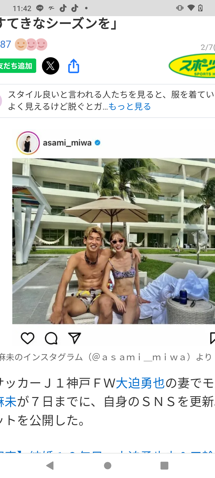 【画像】サッカー元日本代表選手が美人妻と揃って水着姿でツーショット披露…