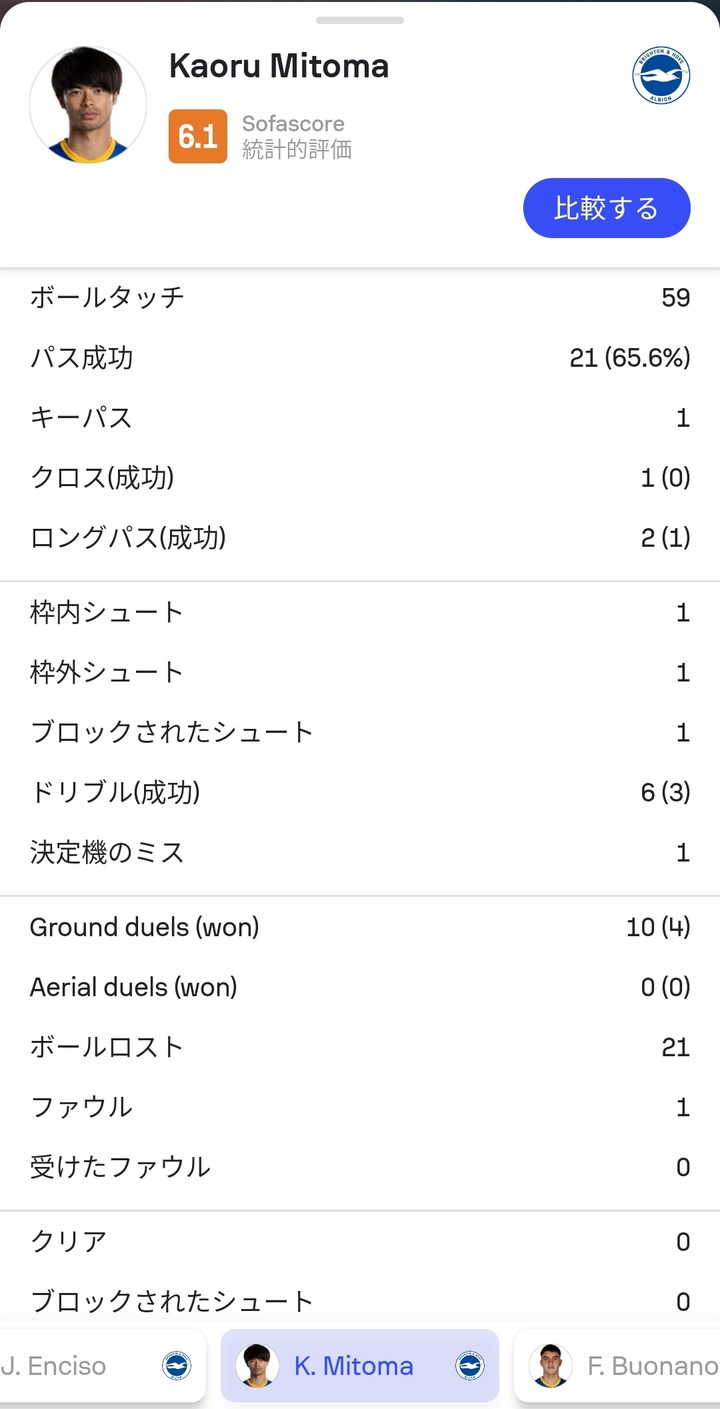 【悲報】原因は疲労!? フォレスト戦での三笘薫のスタッツ…