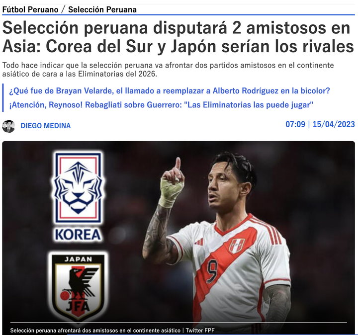 サッカーペルー代表さん、6月に日本との親善試合を希望する