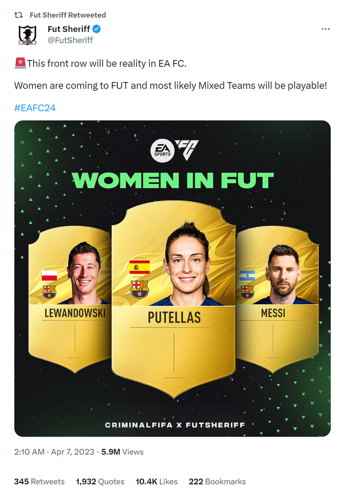 【衝撃】サッカーゲームのFIFA、遂に女まで男と同じ強さで搭載される