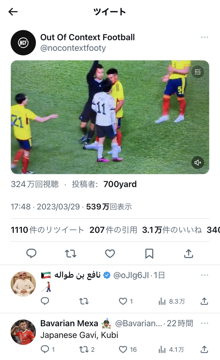 【悲報】久保建英さんのタックル、海外で540万再生されてしまうw