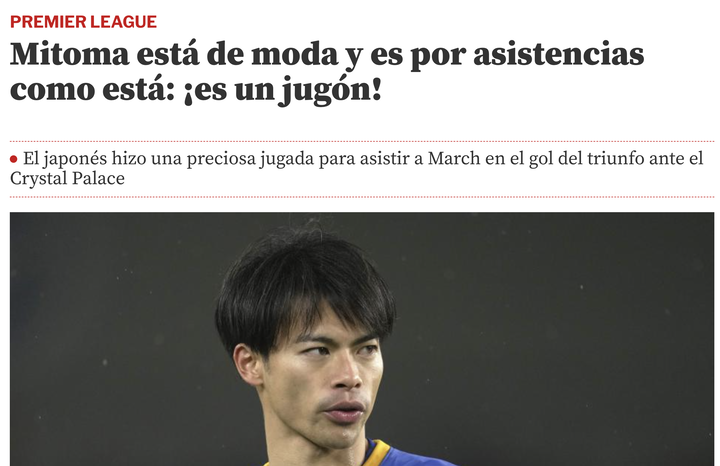 【朗報】三笘薫さん、本日の試合の内容でスペイン紙の見出しを飾るwww