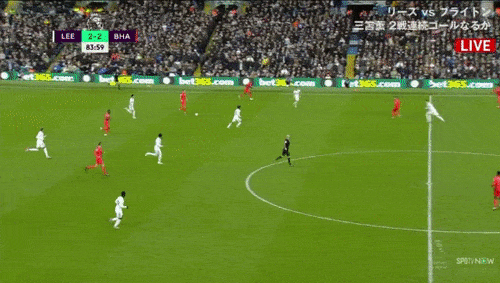 【GIF】リーズ戦で三笘薫が相手DFの裏を取ったシーン!
