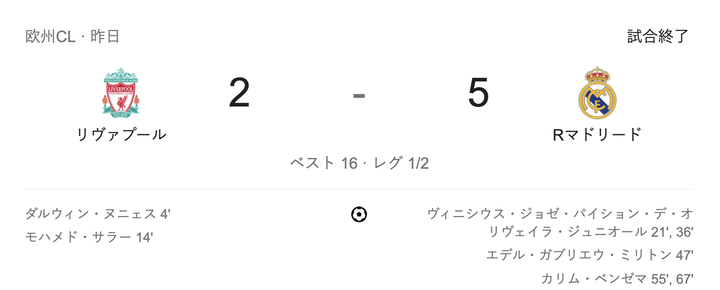 2月のレアルとリヴァプールの試合日程の違いwww