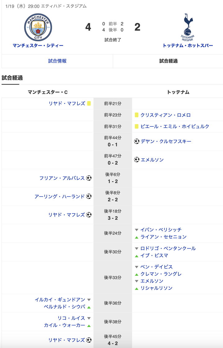 トッテナムさん、前半でマンC相手に2-0でリードした結果www