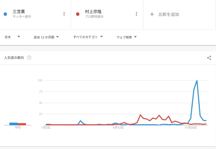 【悲報】野球の村上宗隆さん、三笘薫より全く人気がなかった…