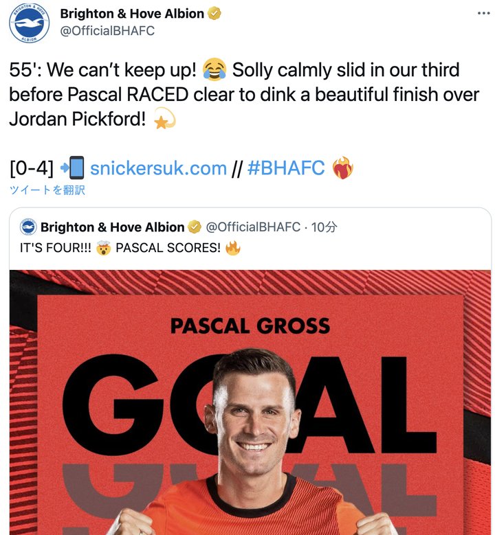 【朗報】三笘のブライトン、エバートン相手に4得点www