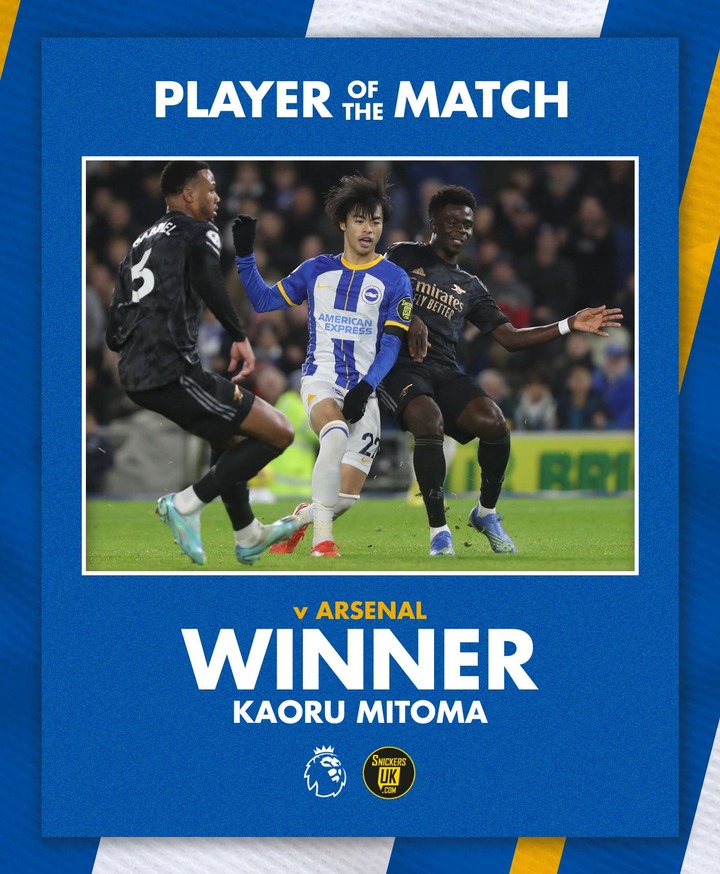 【速報】ブライトン三笘薫さん、アーセナルとの試合で最優秀選手に選ばれてしまうw