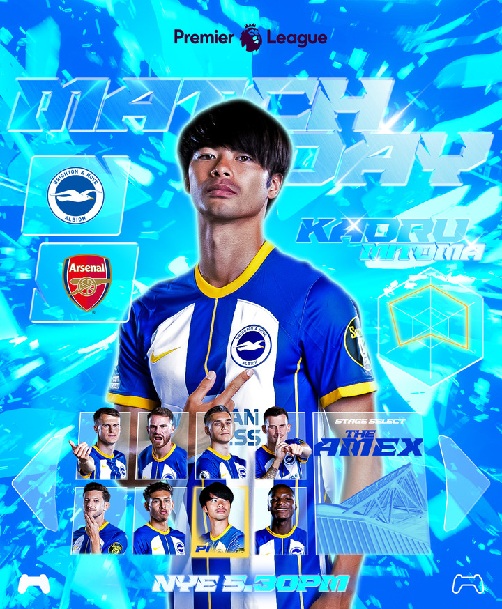 【画像】三笘薫さん、ブライトンの中心選手になってしまう!公式がメイン写真でアーセナル戦を告知www